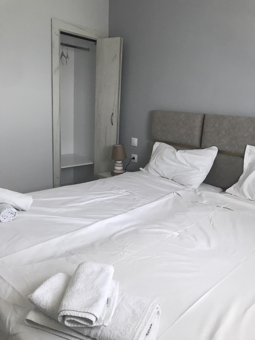 Our apartments, Drenos Rooms are divided in two categories: you can choose from rooms with 3 beds or with 4 beds, fully equipped each one. The rooms with 3 beds consists of one double bed and one single bed, air condition, kitchen equipped with necessary tools, fridge, bathroom with shower, one big wardrobe, balcony with view to the sea.